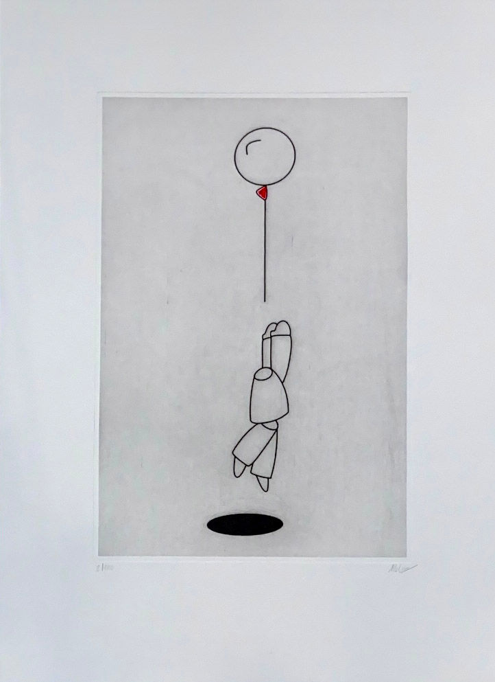 I suoi lavori sono un invito al gioco. Melkio ci chiede di seguirlo dentro i suoi disegni, di sorridere con lui e di non aver vergogna di quel sorriso buffo e stralunato che ci sgancia dal qui e ora.